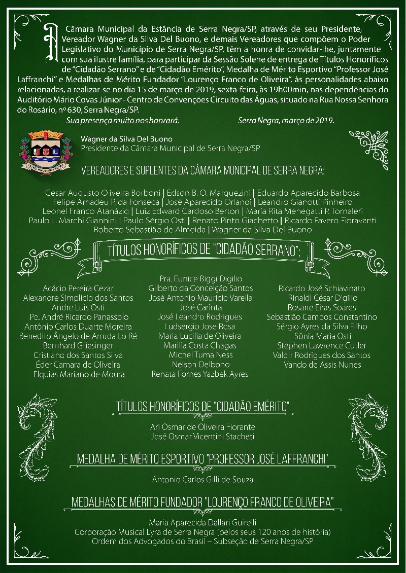 Presidente da Câmara Municipal de Serra Negra/SP
